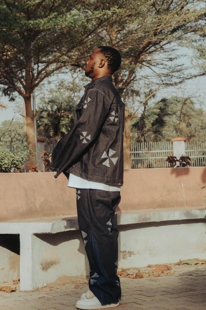 The dark denim set creates a structured and refined feel, while still keeping the look simple and minimal.